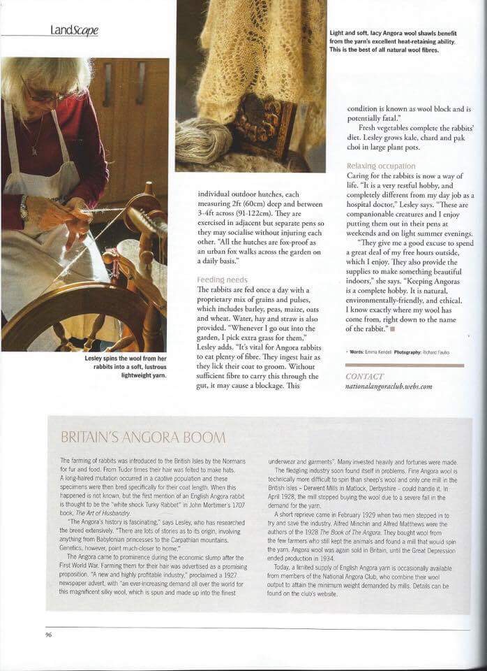 Article on the English Angora rabbit in LandScape magazine in Jan/Feb 2015 and extracts posted here with kind permission of LandScape magazine.