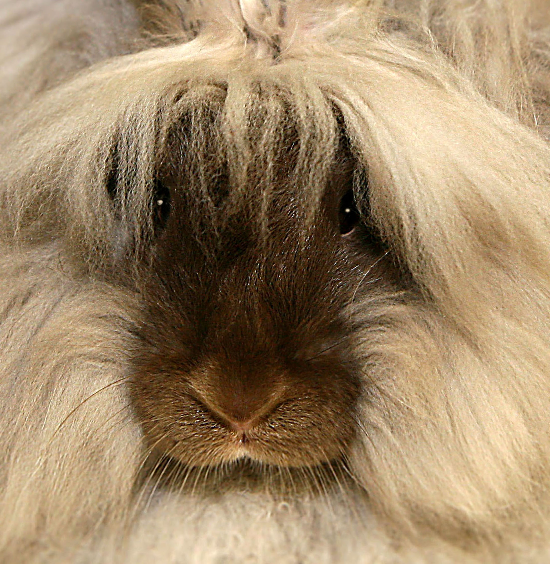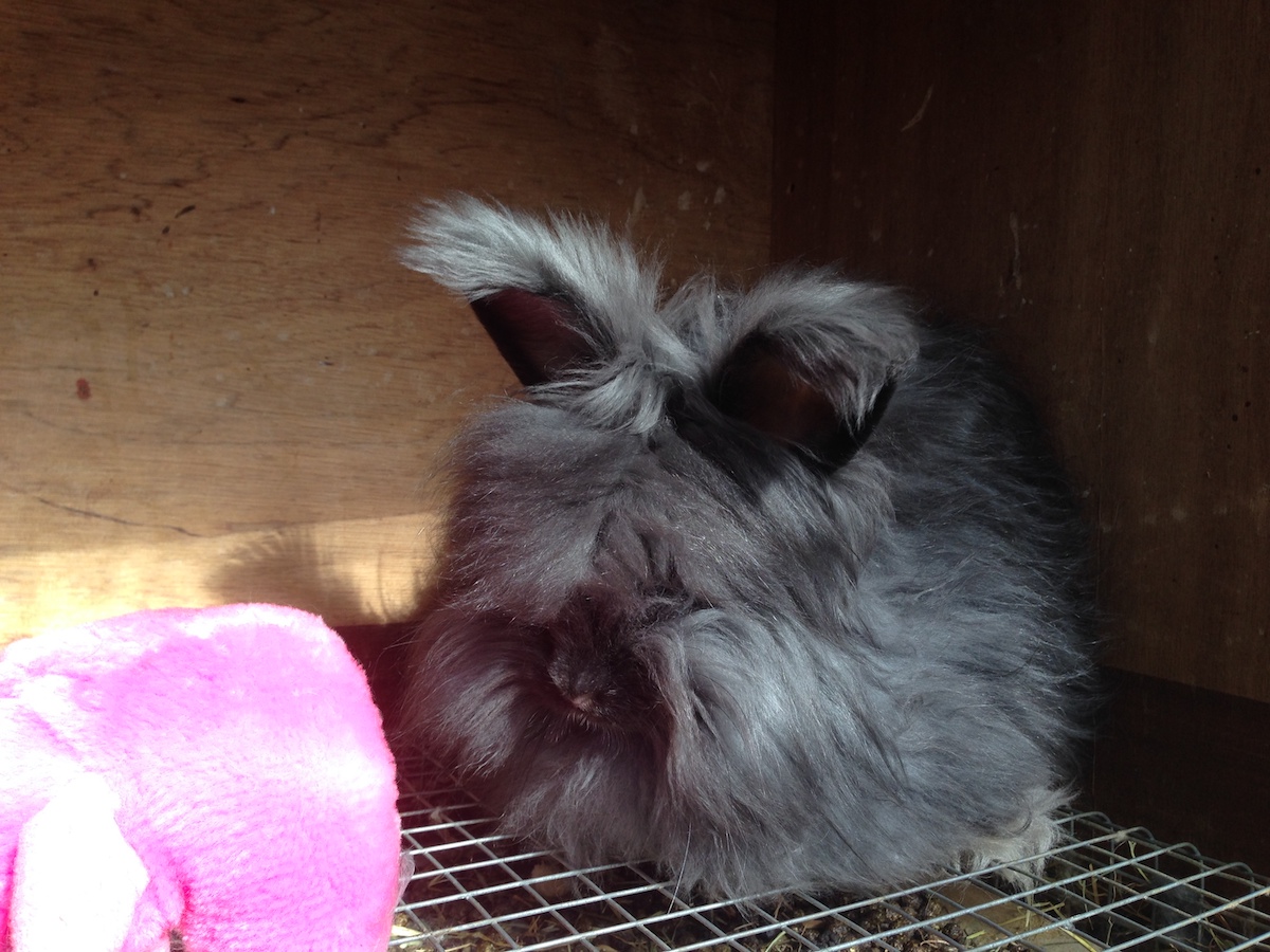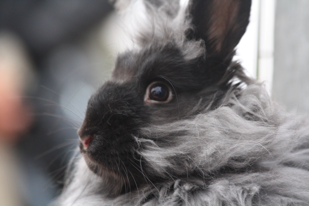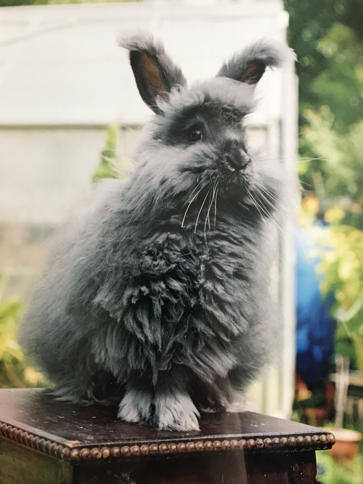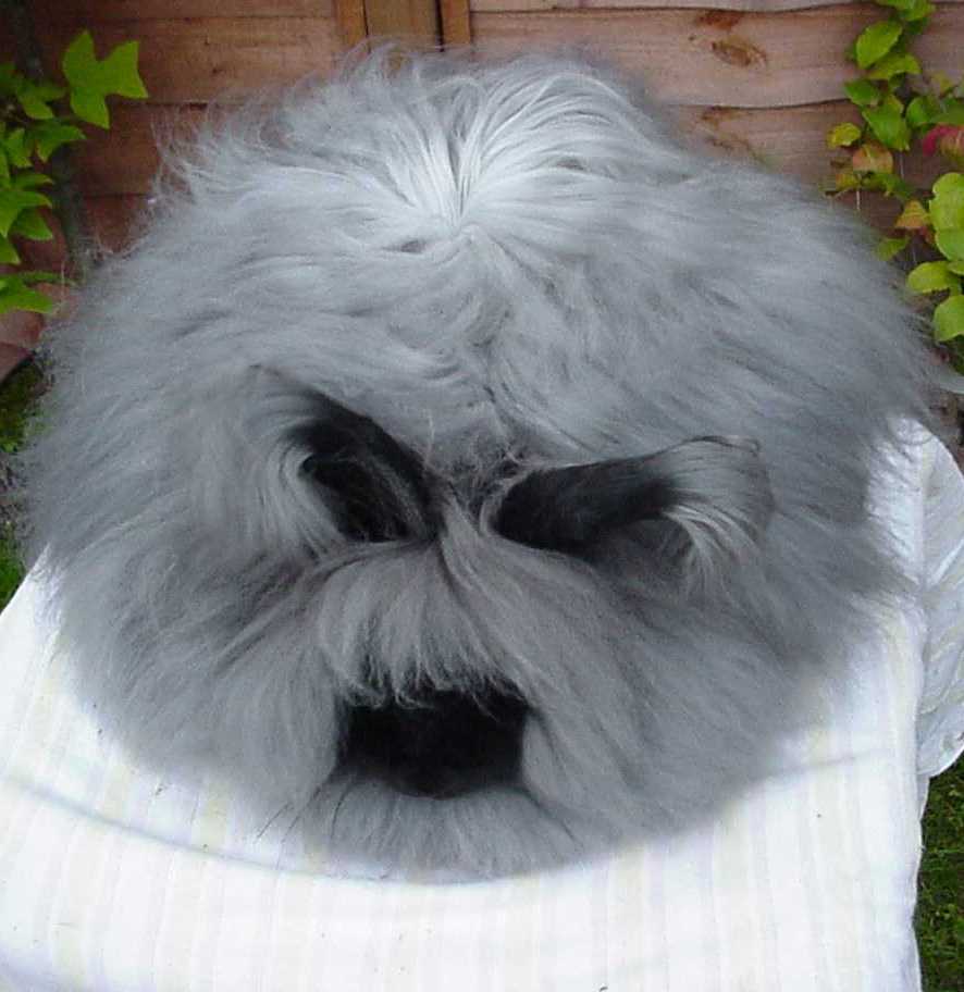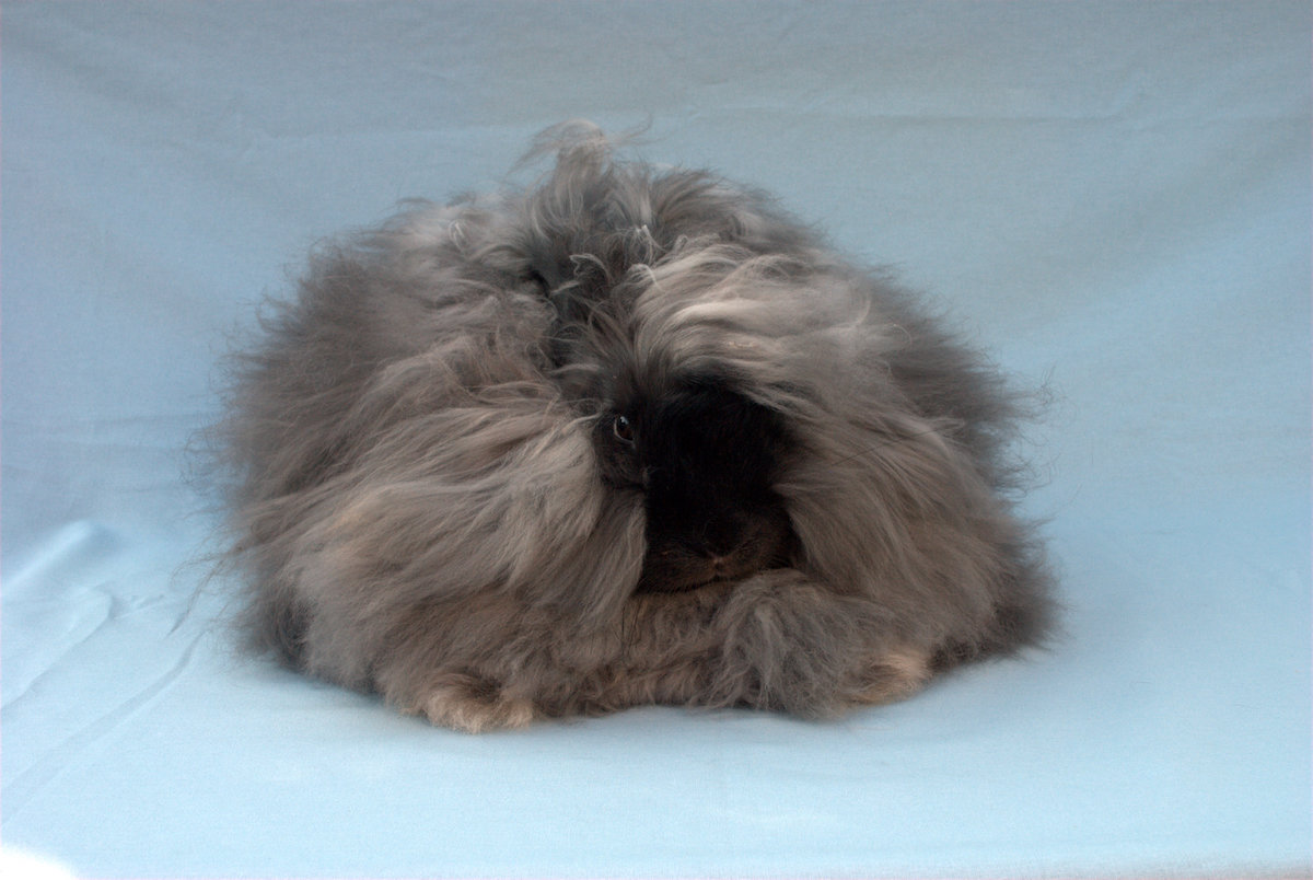 Gill decided to try to bring back the chocolate angora and contacted Peggy Grant-Dalton for a pair, she duly got them and they were so far removed from the chocolates you see today, but she persevered and when she decided to stop breeding rabbits, I carried on improving the chocolates, until I won Best In Show (BIS) at London under judge Yvonne Caladine with a chocolate Doe called Buddha. Since then I have had many chocolate winners, and smokes and Blues which are my favourite colours.