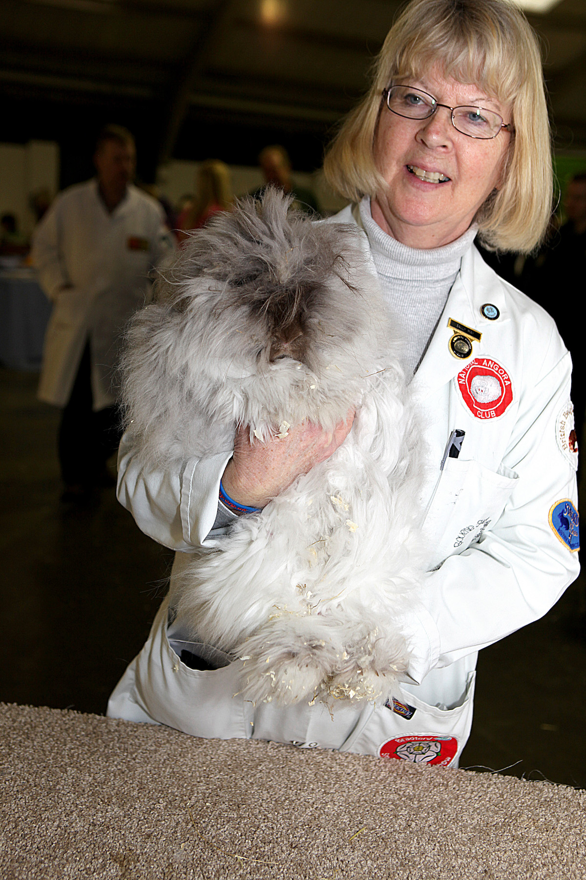 In the meantime I used to go to rabbit shows to show my English Lops, meeting a few angora enthusiasts, but still had no luck. I had put an advert in the local paper to sell baby lops, and was contacted by Gillian Holford who was actually looking for an angora. She had one and I had two, so we got together and Bourne Stud was born. Both of us managed to get a rabbit from Mrs Pratley and Mrs Yvonne Caladine and never looked back.
