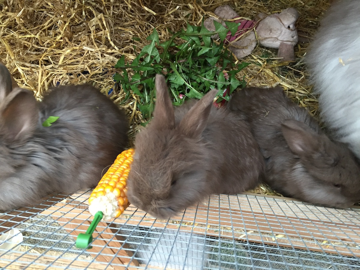 All rabbits must have unlimited access to hay, which is of good nutritional value. Hay keeps teeth in good condition, and is also high fibre, essential for gut health. A high fibre diet will help prevent fur balls. Rabbits enjoy nibbling their barley straw bedding. Whilst barley straw is of poor nutritional value, it is a valuable source of fibre to keep the gut healthy. Readigrass is a very good source of fibre and the rabbits really enjoy it.