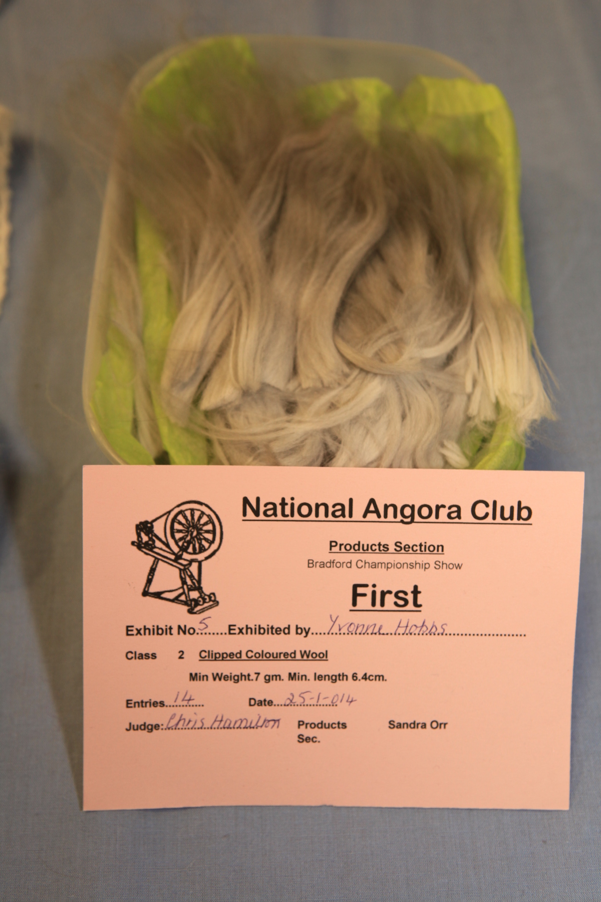 9) Wool to be well presented. Carefully collected from one rabbit and laid in a suitable container so that each line/layer is neat and lying in the same direction (i.e: cut/plucked end tips).
