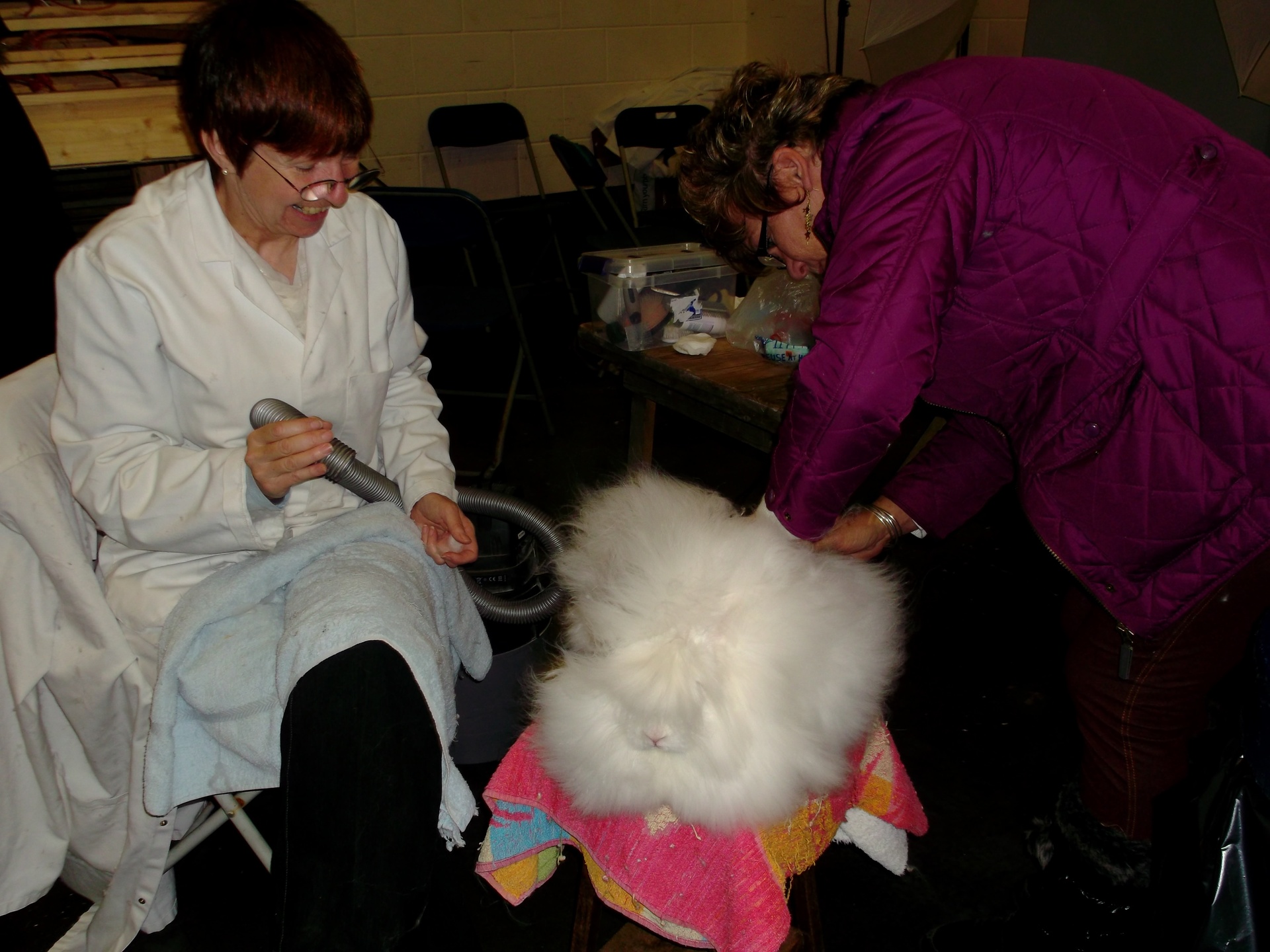 Not all shows will have access to electric plug sockets so be aware that any blowing of your rabbit may only be done at home. You will not be allowed to groom your angora at any time at the show after it has been put in its show pen. If it has made a mess of itself you could ask the secretary if you can clean it but that is all, it is not a time to start grooming all over again.