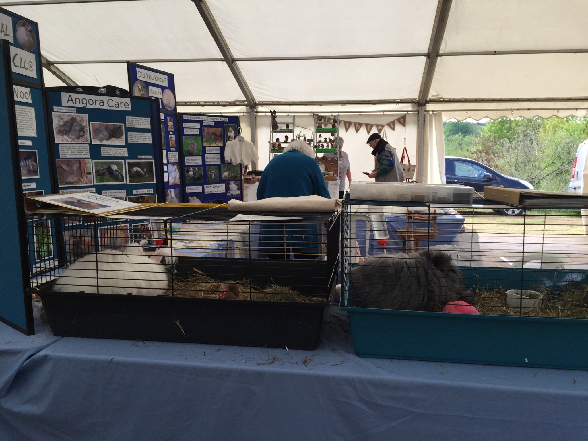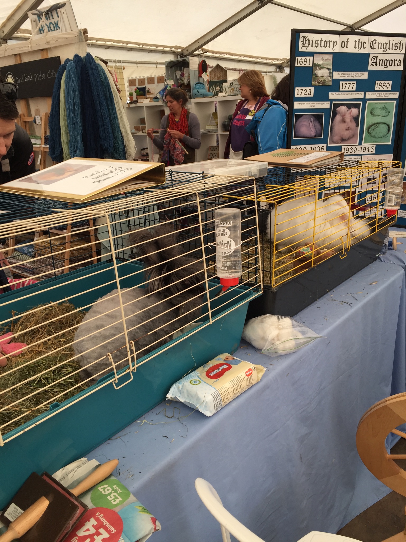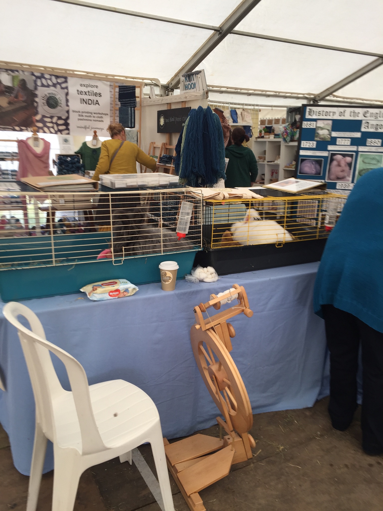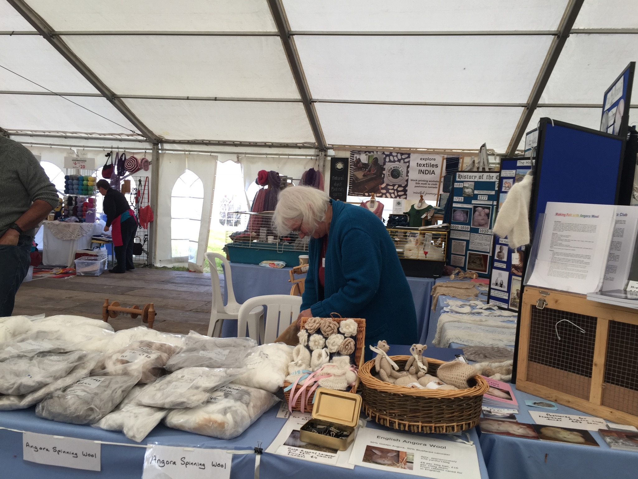Wool@j13 is a relatively new craft festival, held at Lower Drayton Farm, Penkridge, right next to the M6 motorway, Junction 13! This was the second year that the National Angora Club had been invited to take part. Sally May and Lesley Hordon took the Club’s wool for sale, and Sally demonstrated clipping Bunny and Elijah for an admiring audience, whilst Lesley gave a talk on the Angora Rabbit. As usual, drop-in spindle spinning lessons were held on the Stand and proved very popular. A great weekend was had by all. Here are a few images of the event which we thoroughly enjoyed. If you missed Wool@j13, look out for the National Angora Club Stand at 3 other Craft Festivals this summer. We will be at Woolfest in Cockermouth in June, www.woolfest.co.uk, Fibre-East in Ampthill, Bedfordshire in July, www.fibre-east.co.uk and the British Wool Show, Murton, York in August http://britishwool.net . Come and say hello!
