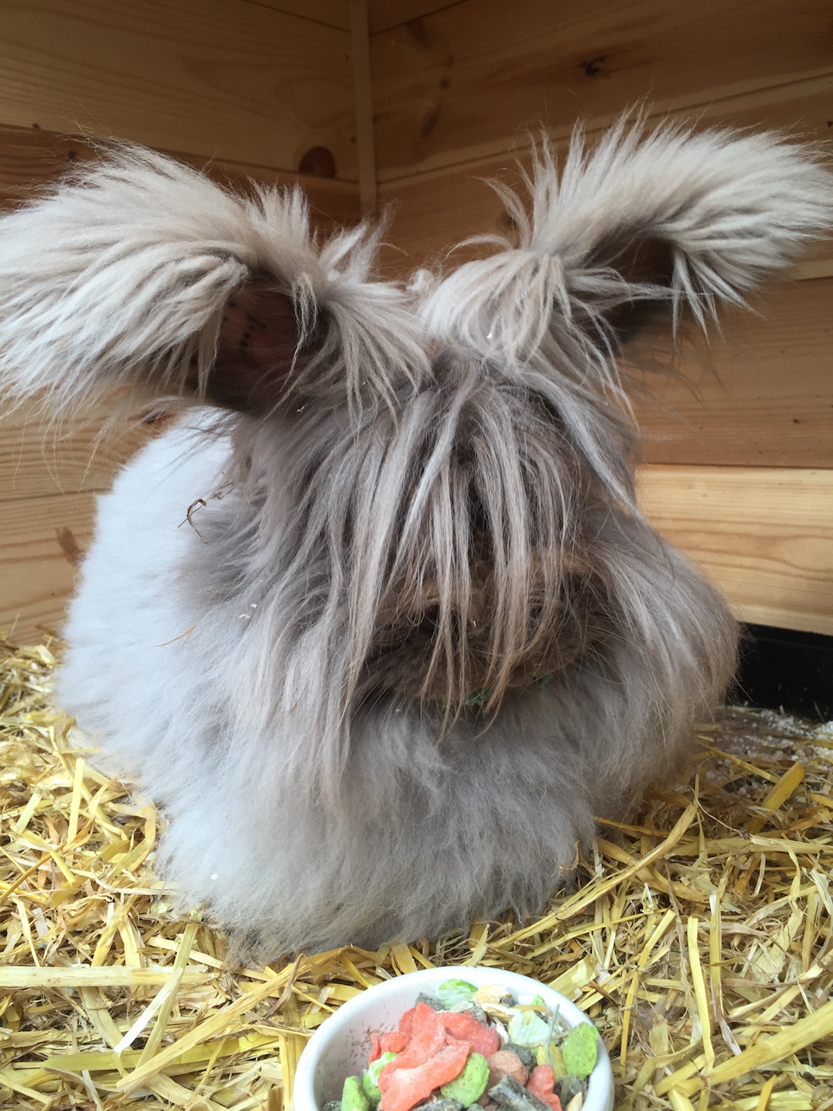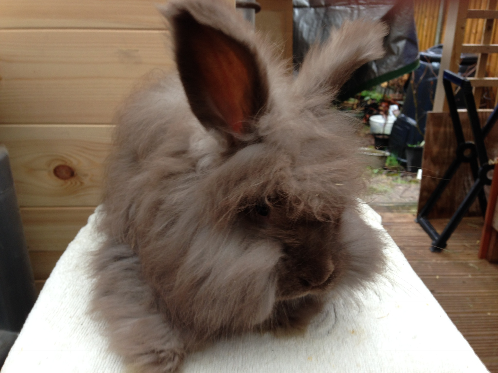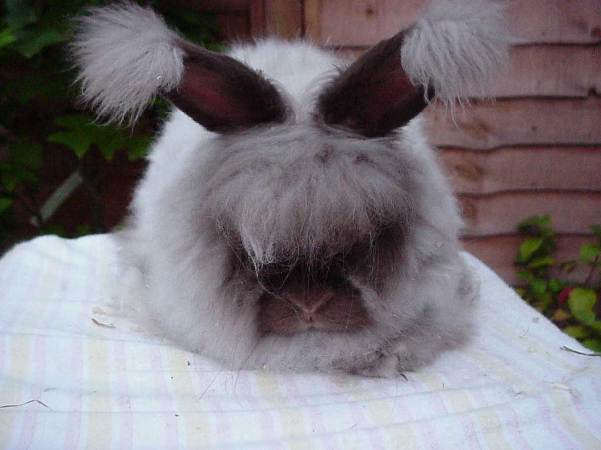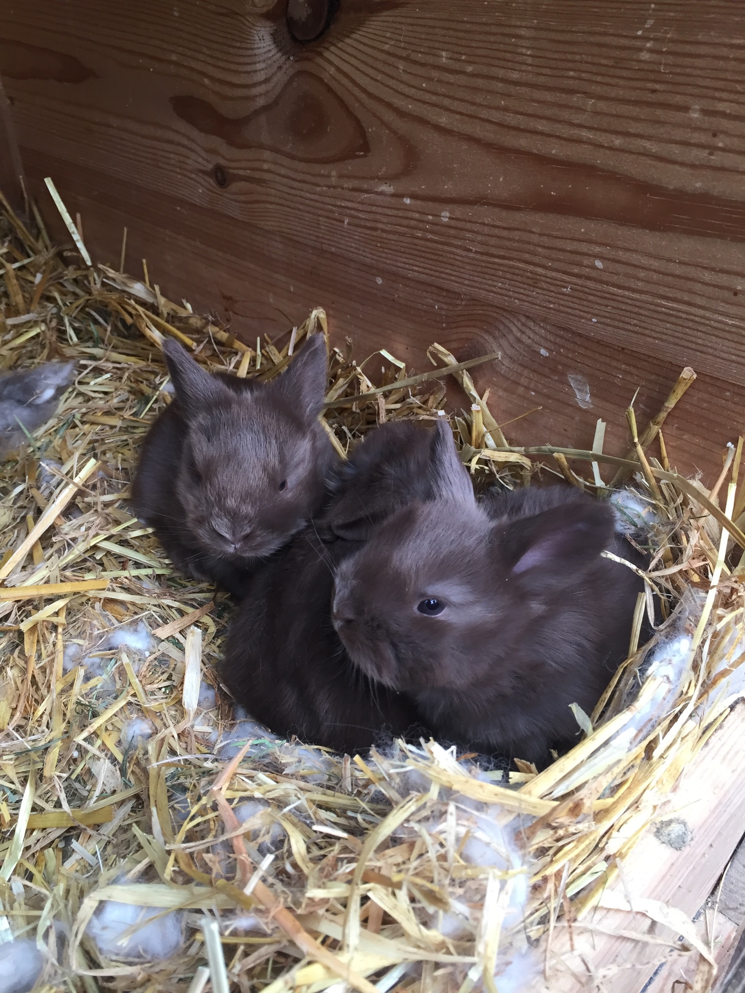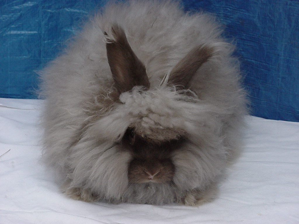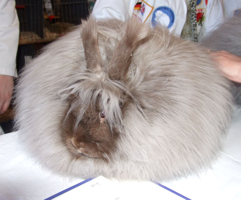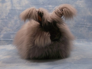 A gallery of chocolate angora rabbits showing them at different ages and stages of coat