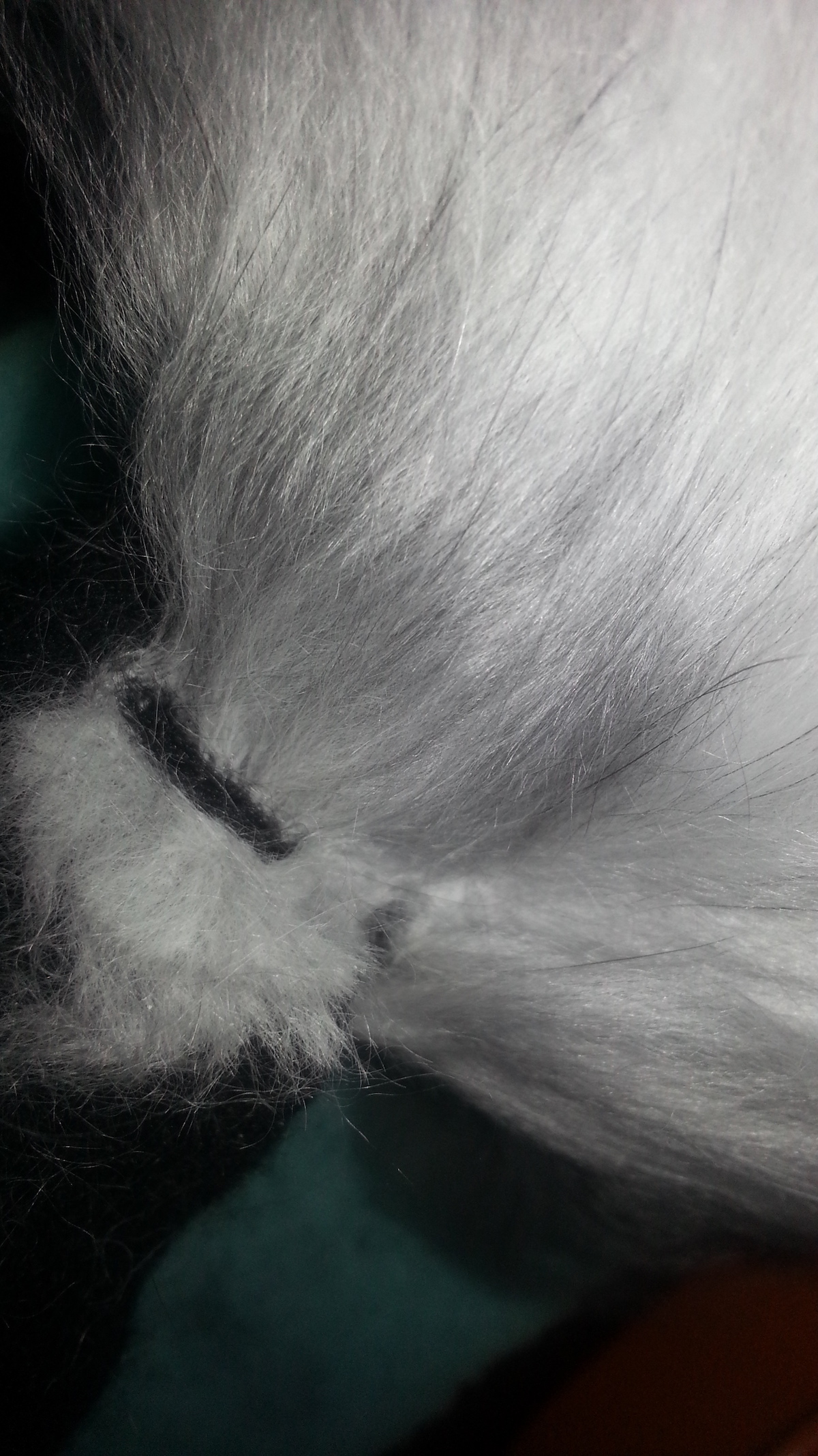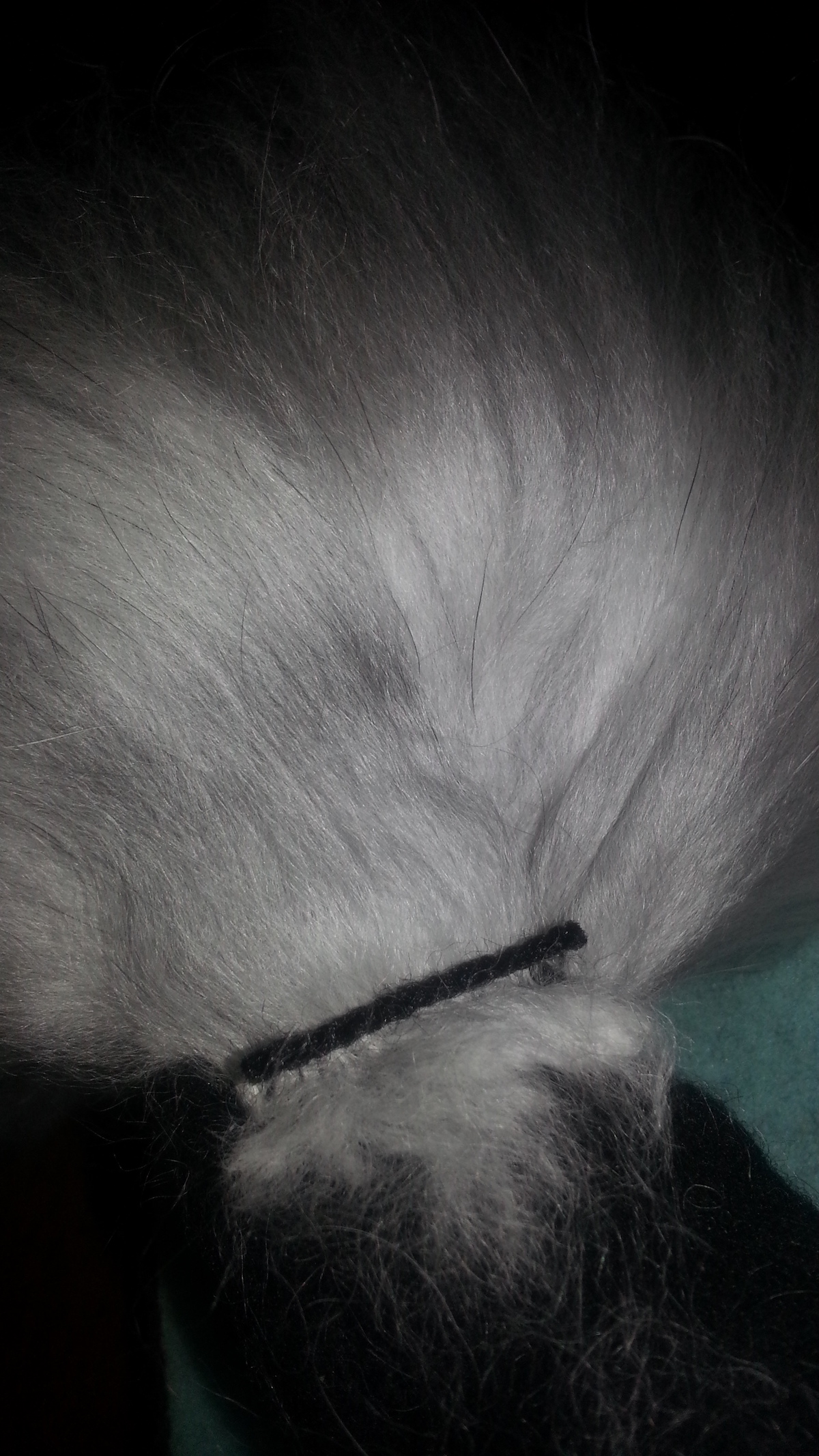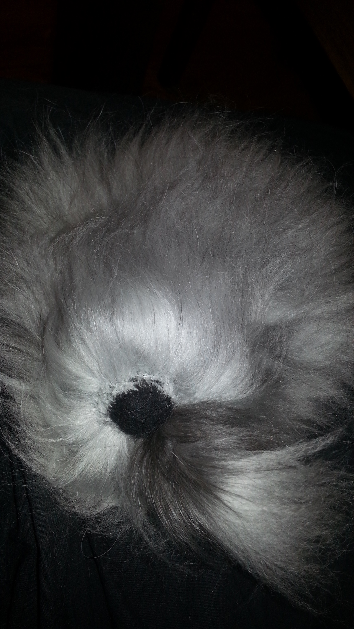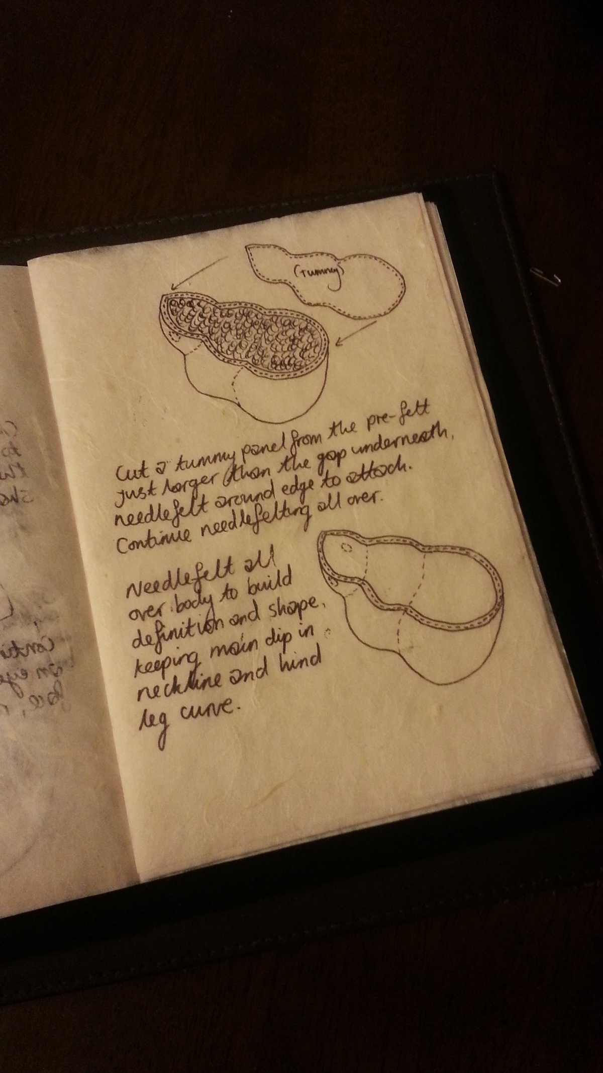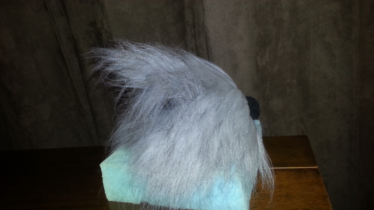 Inspired from my toy making days, I drew a pattern and cut out panels of merino pre-felt (raven is perfect for smokes). I then used a needle felt pen on the sewing line, turned the body inside out, stuffed until taut (pre-felt off cuts are ideal) and shaped. I cut out the ears and layered the tips with darker angora fibre before attaching.