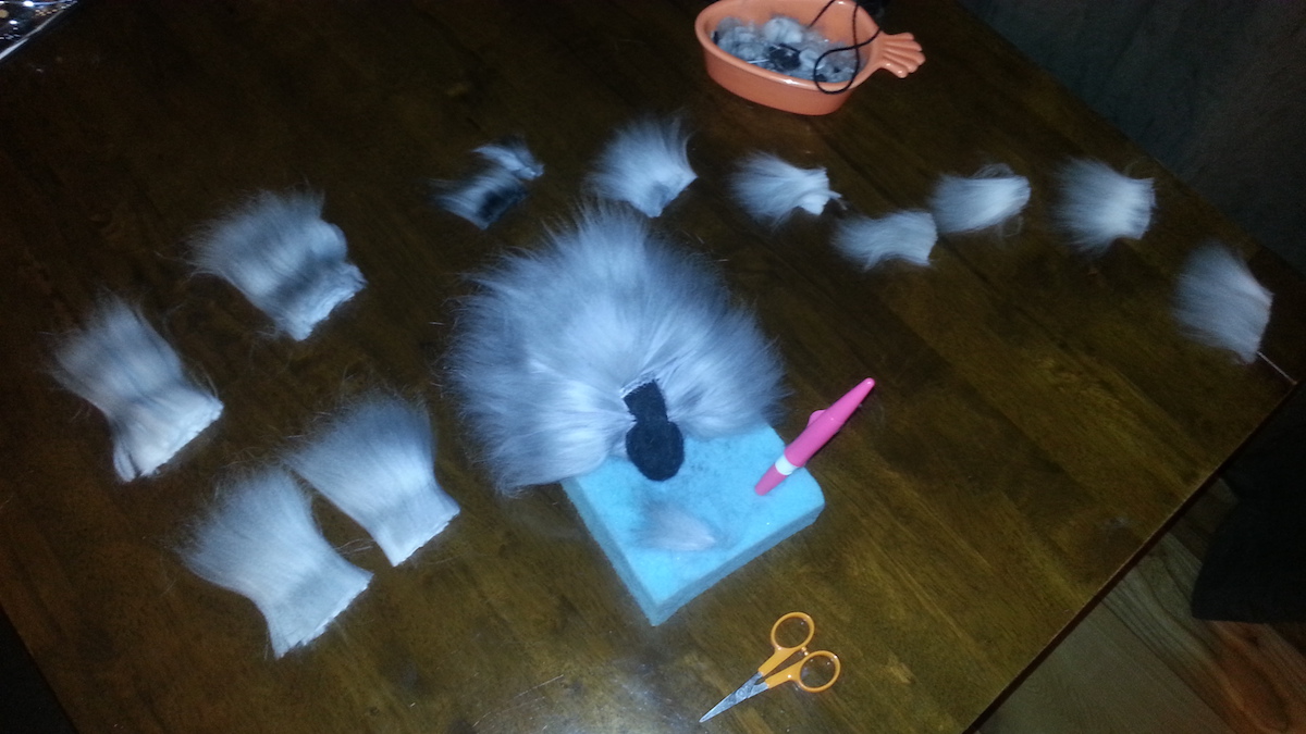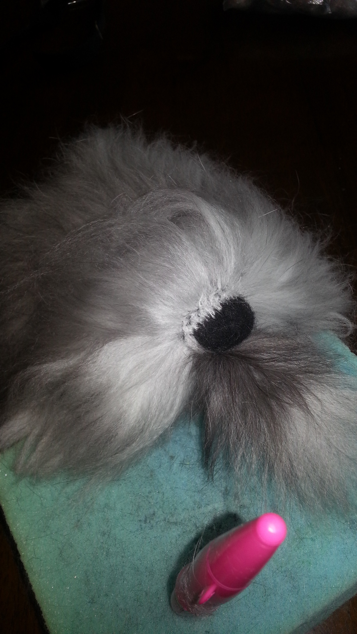 For the most realistic results, label all fibre separately; tail for tail (also great for ears) tummy for tummy, neck for fringe and top coat for body. Always keep flat trimmed ends together, as this is what you attach to the body so the tips show. Then it’s a case of careful layering (2-3mm in between, always lay the tips facing the head) and finishing touches (horse hair for whiskers is fantastic, handy tip: brush a friends horse to save on buying).