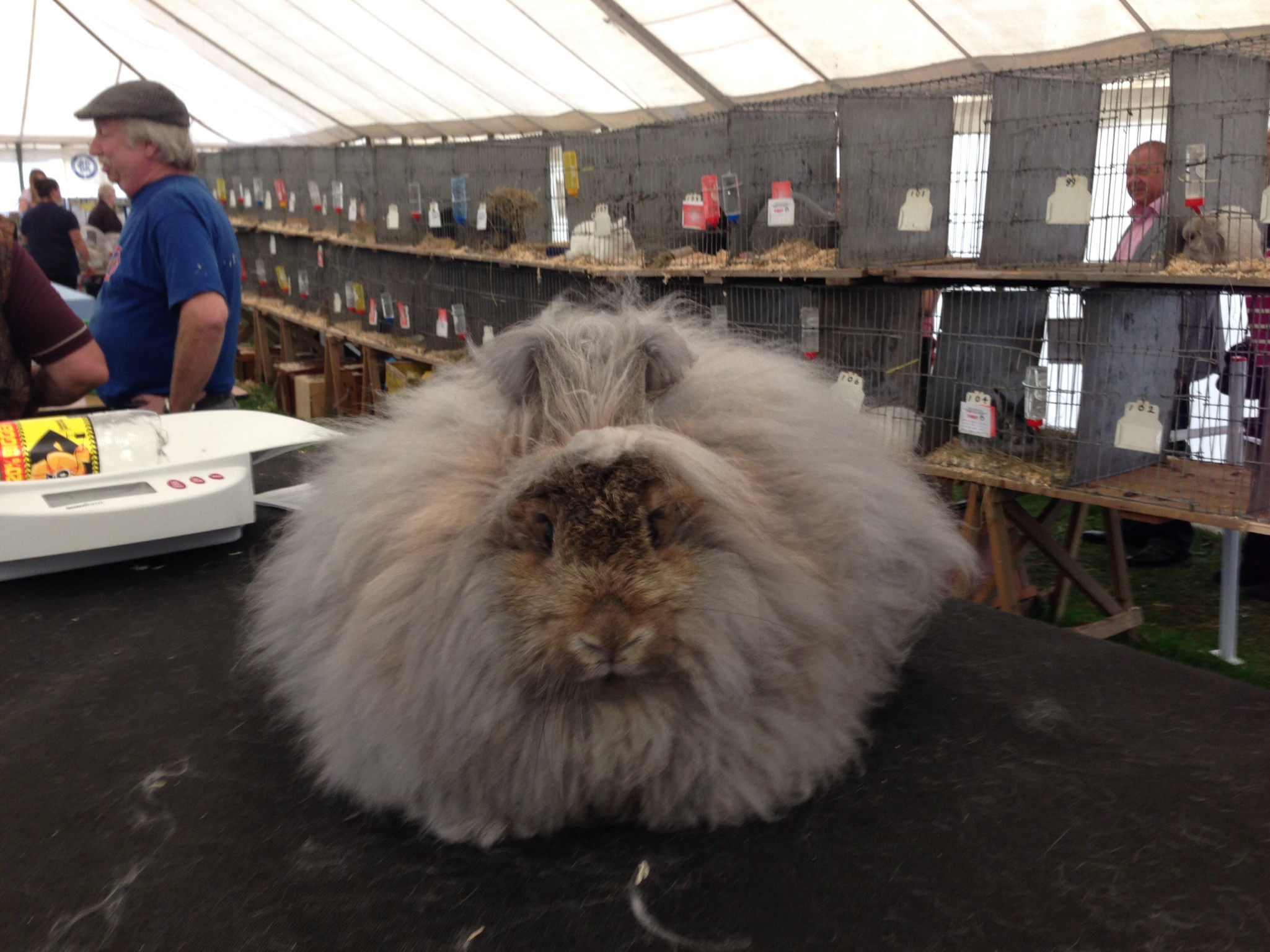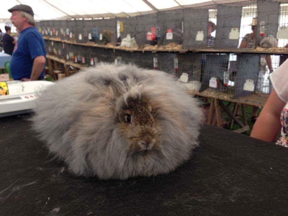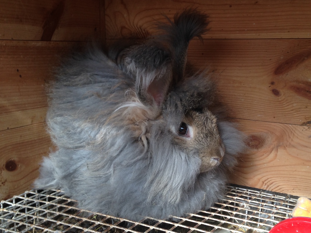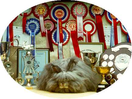 Agouti colours Brown-Grey english angora Brown-Grey breed standard Head, ears and feet wild grey, a mixture of black and gold Wool blue, as dark as possible with tips to match head Eyes brown White belly with blue under-colour Brown grey