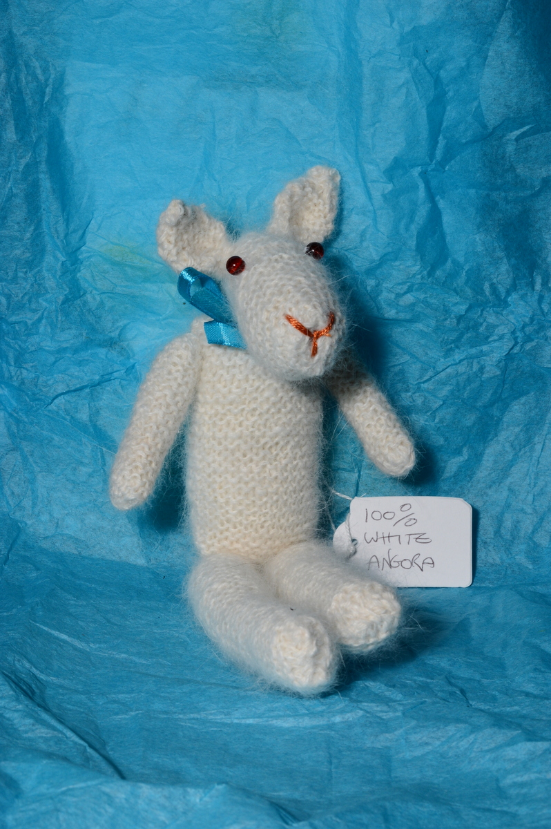 Angora wool can be used in many ways and one fun way is to make toys from it. You can felt the wool, knit it…..